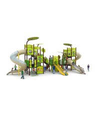 Realizzato in metallo, con scivoli in acciaio, tubo tunnel, pannelli interattivi, arrampicate di risalita.